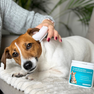 Preparat do czyszczenia uszu psa jako nakładka na palec pozwala czyścić ucho punktowo i kontrolować nacisk. To duży plus szczególnie u zwierząt, które nie tolerują aplikatorów, zakraplaczy albo prób „grzebania” patyczkiem. Dzięki temu zabieg jest krótszy i zwykle mniej stresujący, bo wykonujesz go pewnym, spokojnym ruchem. Dodatkowo miękka chusteczka dopasowuje się do kształtu małżowiny usznej, co ułatwia zebranie woskowiny i zabrudzeń bez podrażniania skóry.
