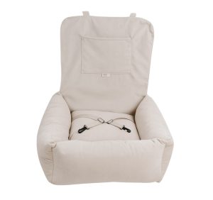 Wypełnienie fotelika wykonane jest z wysokiej jakości pianki, zapewniającej odpowiednią miękkość i wygodę, tworząc idealne miejsce do relaksu. Boki fotelika posiadają ochraniacze, które zabezpieczają wypełnienie przed zabrudzeniem i uszkodzeniami, ułatwiając utrzymanie legowiska w czystości. Wyjmowane wypełnienie pozwala na łatwą konserwację i dostosowanie fotelika do preferencji Twojego psa.