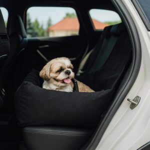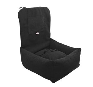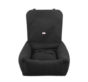 🔸 Estetyczny wybór dla ciemnej sierści – czarny welur świetnie maskuje włosy psa o ciemnym umaszczeniu, dzięki czemu fotelik dłużej wygląda schludnie i nie wymaga tak częstego czyszczenia.