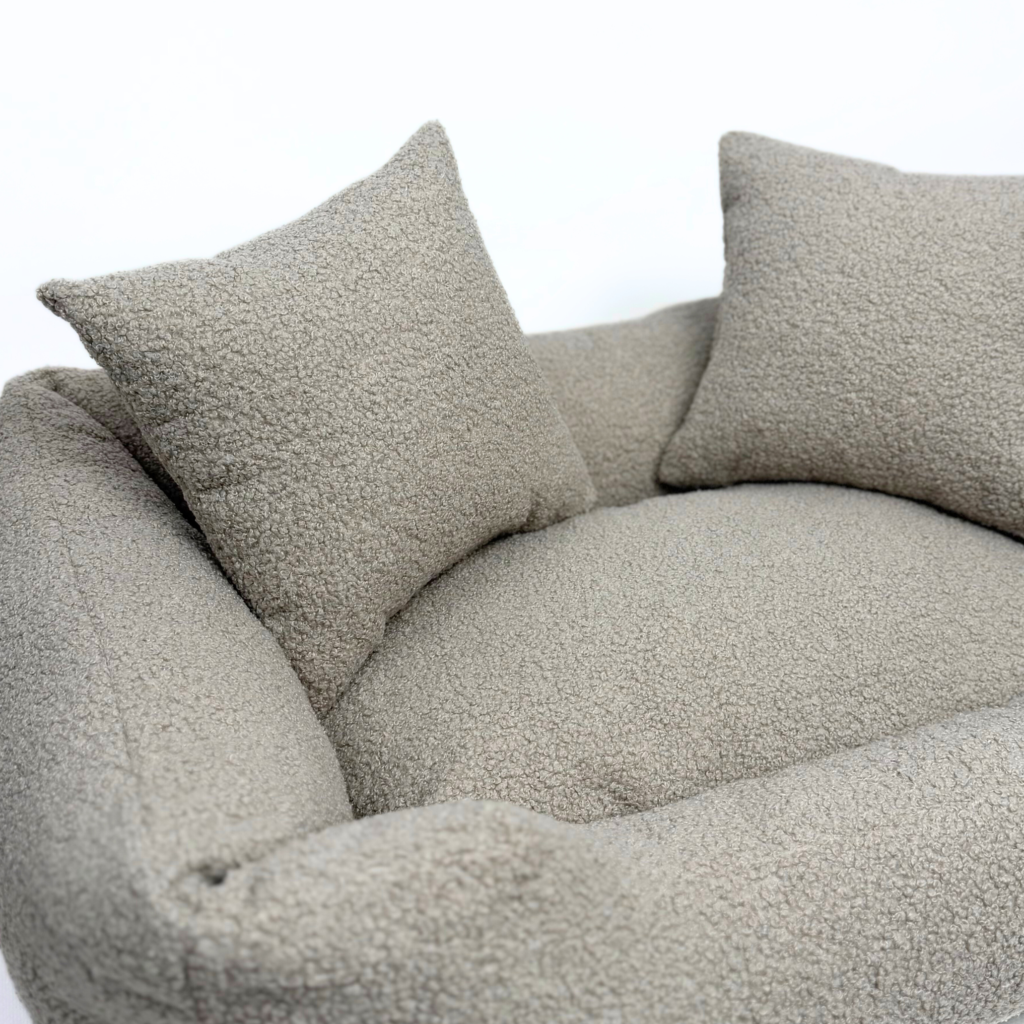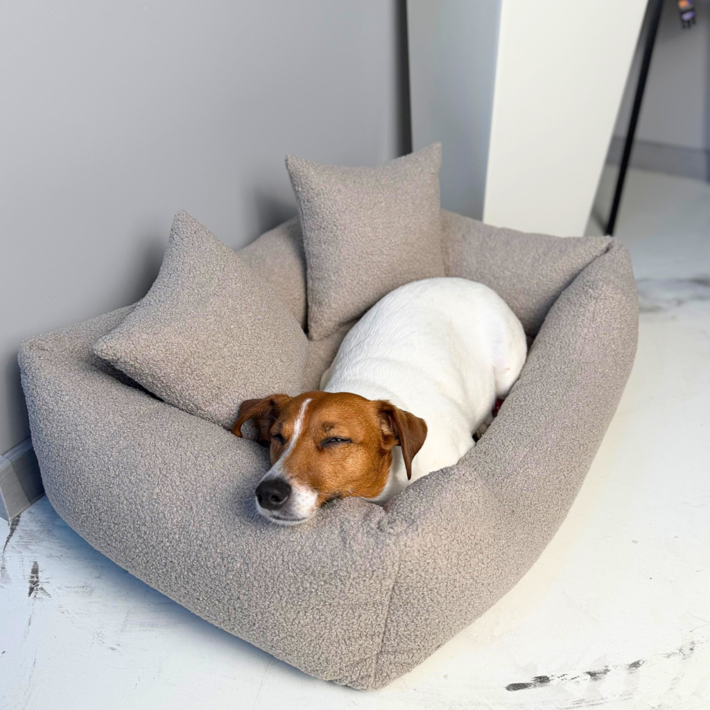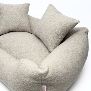Trójwymiarowa struktura: tkanina bouclé („baranek”) jest niezwykle przyjemna dla wrażliwego psiego pyska i łap.