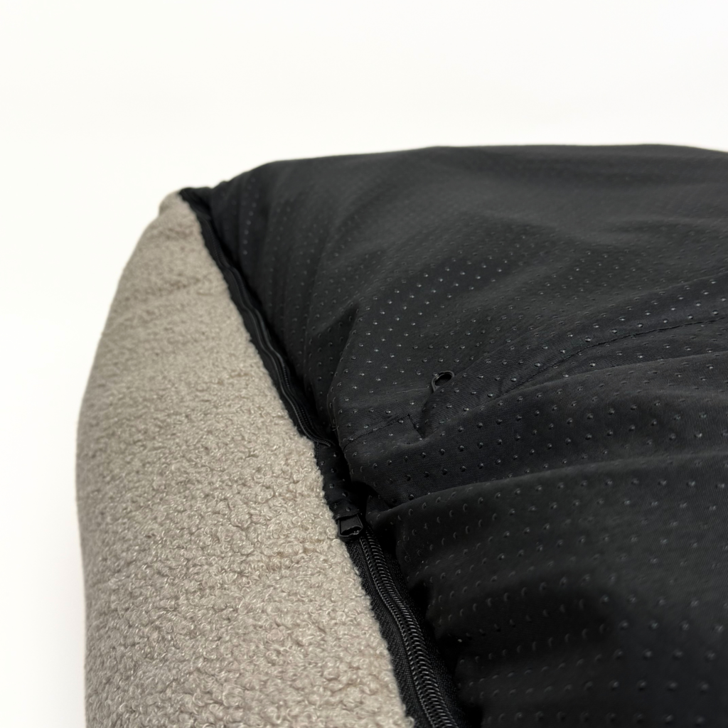 Zdejmowany pokrowiec to jedna z tych rzeczy, które docenisz po pierwszym spacerze w deszczu. W Lumi zastosowaliśmy wytrzymały zamek błyskawiczny, dzięki któremu pokrowiec zdejmujesz szybko i bez siłowania się z materiałem. Gdy pojawi się sierść, kurz albo ślady łap, po prostu wrzucasz pokrowiec do pralki i przywracasz legowisku świeżość — bez szorowania i bez stresu.