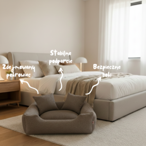 Przytulność: Wprowadza do pomieszczenia ciepłą atmosferę, tworząc dla psa idealny, wyciszający azyl.