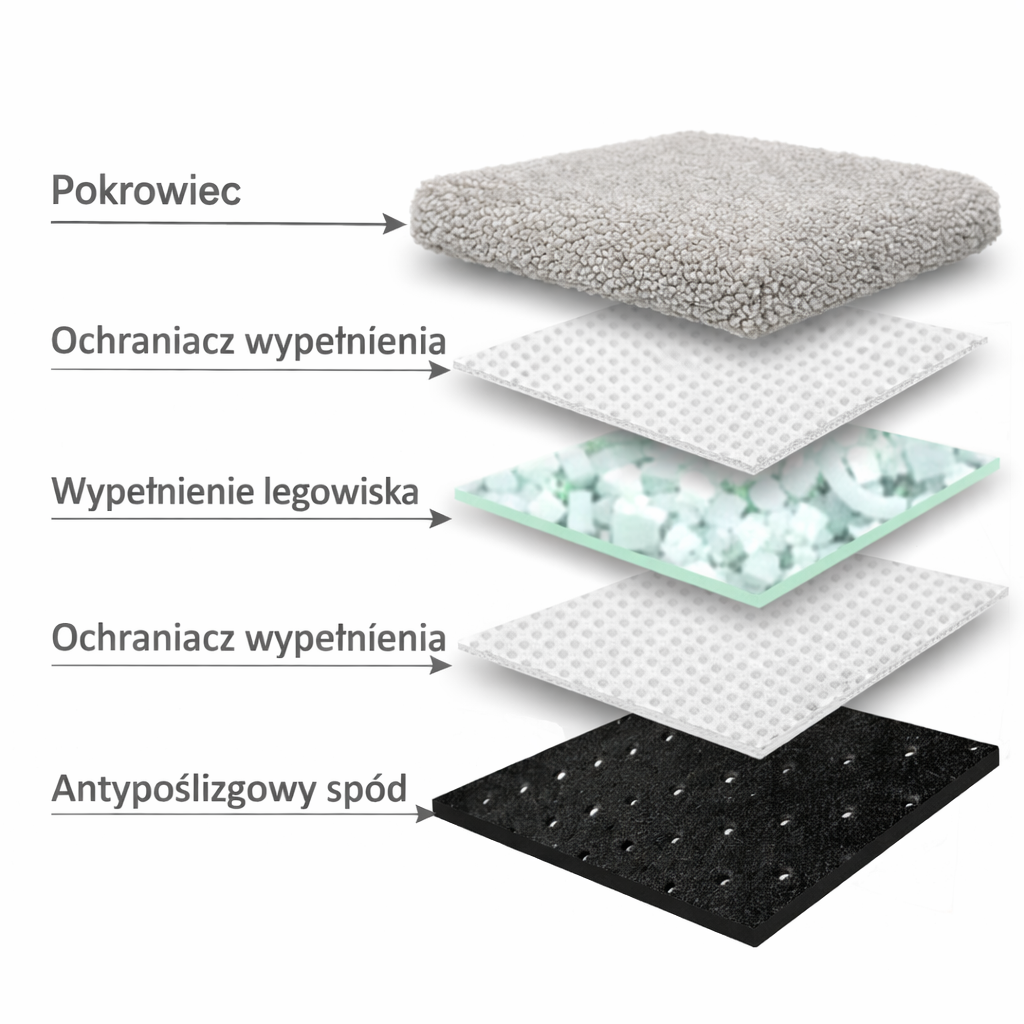 Antypoślizgowy spód: specjalna struktura na spodzie zapobiega przesuwaniu się kanapy, nawet podczas radosnych skoków Twojego pupila. Dodatkowo chroni przed wilgocią od podłoża.