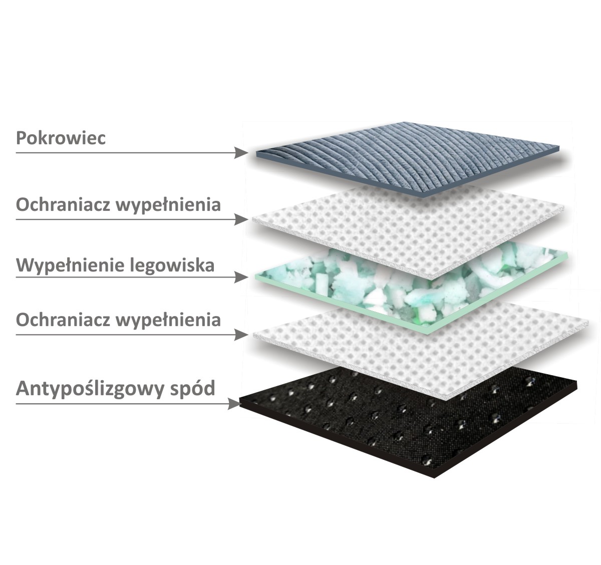 Dbając o bezpieczeństwo Waszych pupili, do każdej z naszych kanap ortopedycznych dodaliśmy specjalny spód wykonany z tkaniny antypoślizgowej. Ten element nie tylko skutecznie zapobiega przesuwaniu się legowiska, ale także dodatkowo chroni je przed wilgocią, zapewniając kompleksową ochronę i wygodę dla Waszych psów.