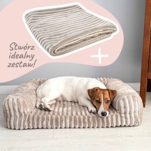 Nasz kocyk to połączenie luksusowej miękkości, eleganckiego wyglądu i funkcjonalności, które zaspokoją wszystkie potrzeby Twojego pupila. Wykonany z dzianiny osnowowej o subtelnych, 2,5-centymetrowych prążkach, przypominających sztruks, jest lekki, elastyczny i idealnie dopasowuje się do kształtu legowiska. Jego wierzchnia warstwa, dzięki delikatnym, rozwłóknionym końcom nitek, jest niezwykle aksamitna w dotyku. Druga strona kocyka to pluszowy materiał, który zapewnia wyjątkowy komfort i przyjemne ciepło.