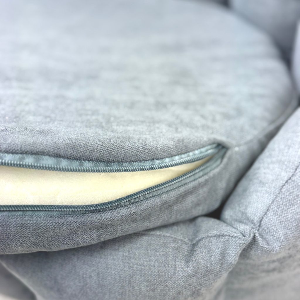 Środek legowiska został zaprojektowany tak, aby łączyć wygodę z troską o zdrowie pupila. Wyjmowana część na zamek pozwala łatwo zadbać o higienę i świeżość, co ma ogromne znaczenie zwłaszcza w przypadku psów wrażliwych czy skłonnych do alergii. Wnętrze tworzy połączenie 3 cm pianki Visco Memory i 3 cm pianki PUR – zestawienie, które zapewnia elastyczne podparcie, odciąża stawy i wspiera kręgosłup, dzięki czemu odpoczynek jest naprawdę regenerujący.