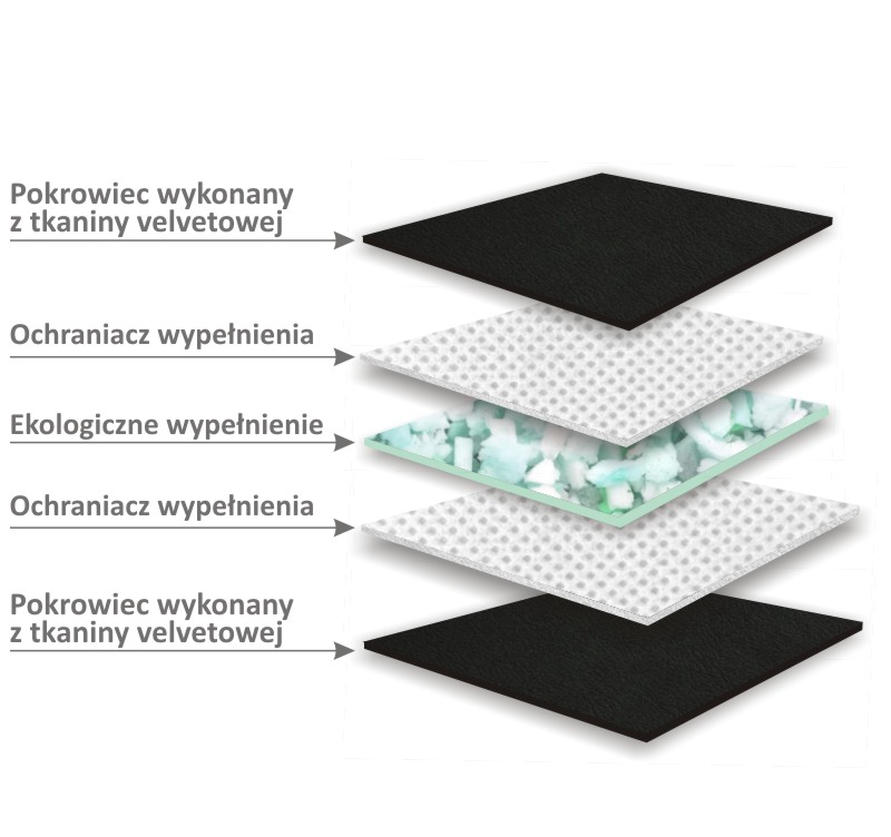 Tkanina Velvet jest niezwykle miła i ciepła w dotyku, co sprawia, że legowisko z tym pokrowcem staje się komfortowym miejscem do wypoczynku dla zwierzęcia. Czarny kolor dodaje elegancji i uniwersalności pokrowcowi. Łatwo komponuje się z różnymi kolorami i wzorami, co pozwala dostosować legowisko do wnętrza. Pokrowiec jest zdejmowany, co ułatwia jego czyszczenie. Można go czyścić w zależności od potrzeb, co jest istotne dla utrzymania higieny w miejscu odpoczynku zwierzęcia. Posiada właściwości trudnopalne, co oznacza, że jest odporny na ogień. To ważna cecha, szczególnie w kontekście bezpieczeństwa zwierząt. Tkanina, z której wykonany jest transporter oznaczona jest znakiem Petproof, czyli wykazuje zwiększona odporność na wyciąganie nitek powstałe od zwierzęcych pazurków. Ponadto sierść nie wbija się w materiał i jest łatwa do usunięcia. Pokrowiec Velvet jest odporny na zadrapania oraz ścieranie, co sprawia, że utrzymuje swoją estetykę nawet przy intensywnym użytkowaniu.
