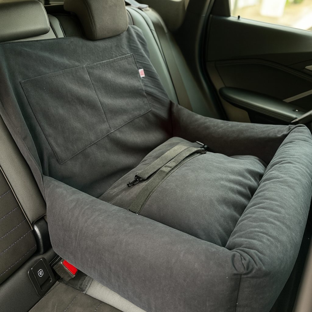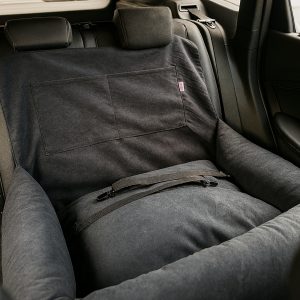 Nasz fotelik XL został zaprojektowany tak, aby idealnie dopasować się do wnętrza większości modeli samochodów. Jego rozmiar zajmuje około dwóch tylnych siedzeń, zapewniając przestrzeń i wygodę Twojemu psu, a jednocześnie nie ogranicza funkcjonalności auta. Dzięki regulowanym pasom i przemyślanej konstrukcji fotelik można łatwo zamontować na tylnych siedzeniach, zapewniając stabilność podczas jazdy. To praktyczne i uniwersalne rozwiązanie dla właścicieli zarówno mniejszych, jak i większych pojazdów.