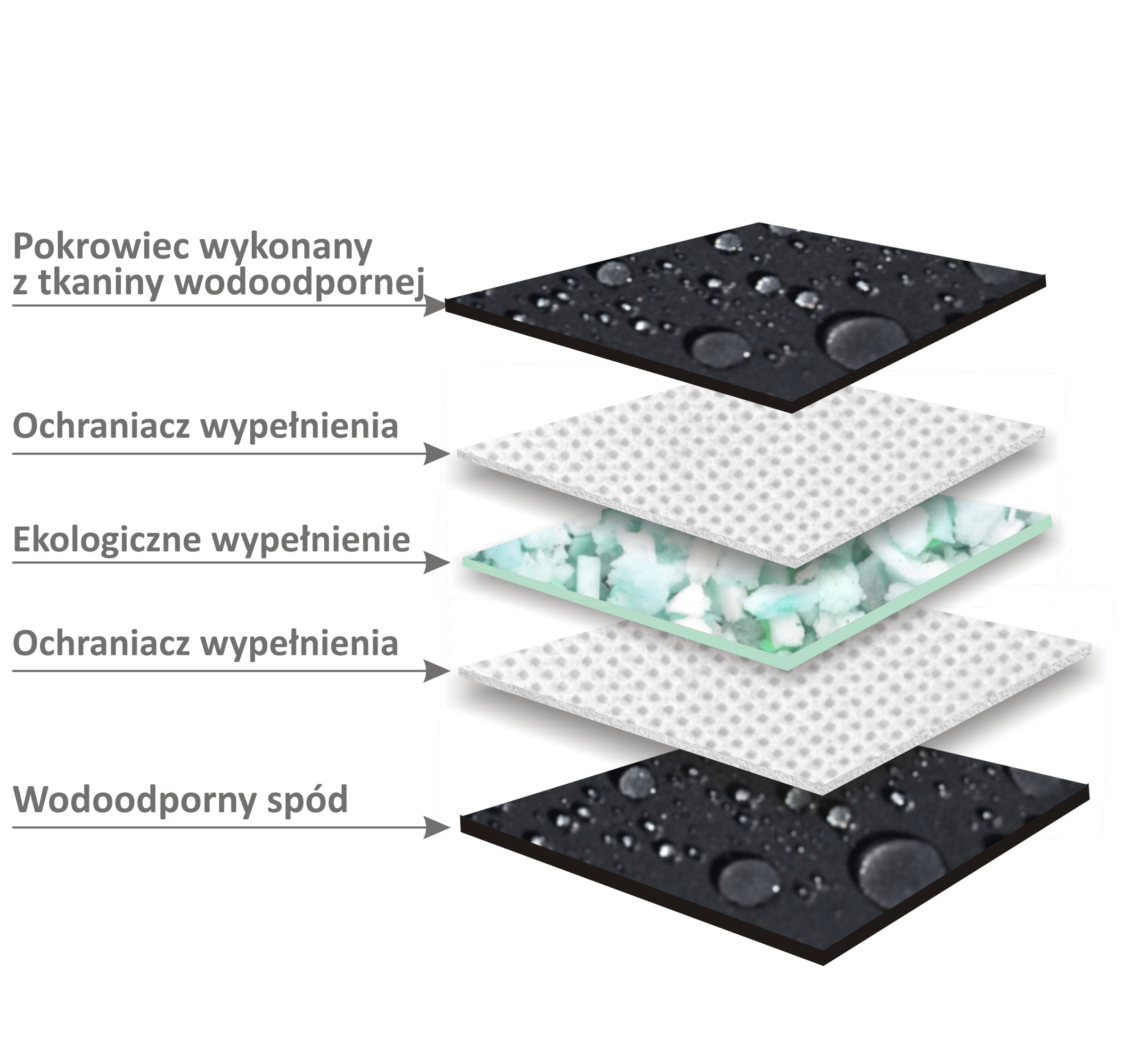 Pokrowiec wykonany z tkaniny posiadającej właściwości wodoodporne, która ogranicza wnikanie wilgoci. Mocny splot dodatkowo wzmacnia strukturę, dzięki temu tkanina jest trwała i odporna na wszelkiego rodzaju przetarcia oraz rozciąganie. Posiada Certyfikat Oeko-Tex co oznacza, że tkanina jest pozbawiona substancji szkodliwych i niebezpiecznych dla zdrowia. To istotny aspekt, szczególnie dla produktów używanych przez zwierzęta domowe. Pokrowiec jest zdejmowany, co ułatwia jego czyszczenie. Można go czyścić w zależności od potrzeb, co jest istotne dla utrzymania higieny w miejscu odpoczynku zwierzęcia.