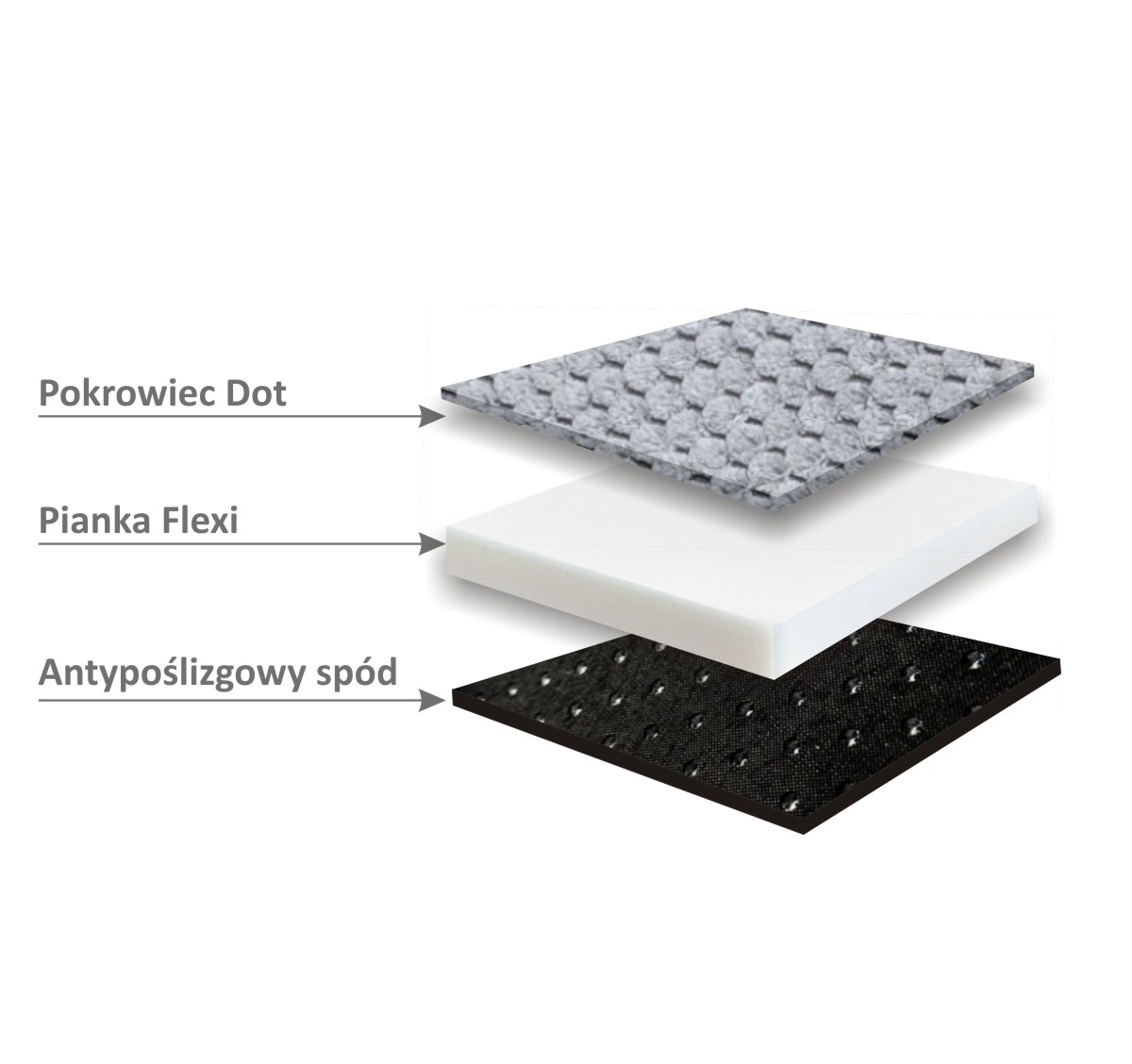 Pokrowiec Dot - to doskonałe połączenie elegancji, wygody i trwałości. Pokrowiec wykonany jest z delikatnej tkaniny pluszowej premium o gramaturze 310g/m2. To zapewnia miękkość i przyjemność w dotyku. Materiał jest bardzo wytrzymały i odporny na przetarcia, co gwarantuje długotrwałe korzystanie. Tkanina jest łatwa w utrzymaniu czystości, co ułatwia codzienną pielęgnację schodków i dbanie o higienę zwierząt. Pokrowiec Dot wyróżnia się ciekawym designem, dodającym elegancji . Skład tkaniny to 90% poliester (PE) i 10% poliamid (NL). To dobrze zrównoważone połączenie, łączące trwałość z elastycznością materiału.
